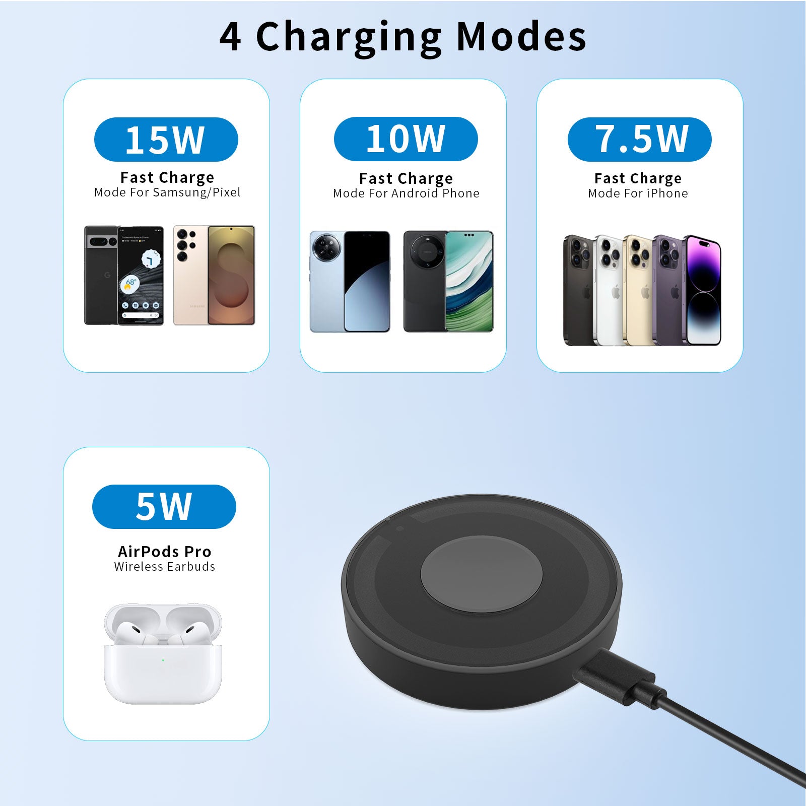 Flexible Power & Fast Charging: Supports four charging modes (15W, 10W, 7.5W, 5W) for broad compatibility. For fast charging, a PD 3.0 20W (or 9V+) adapter is recommended.