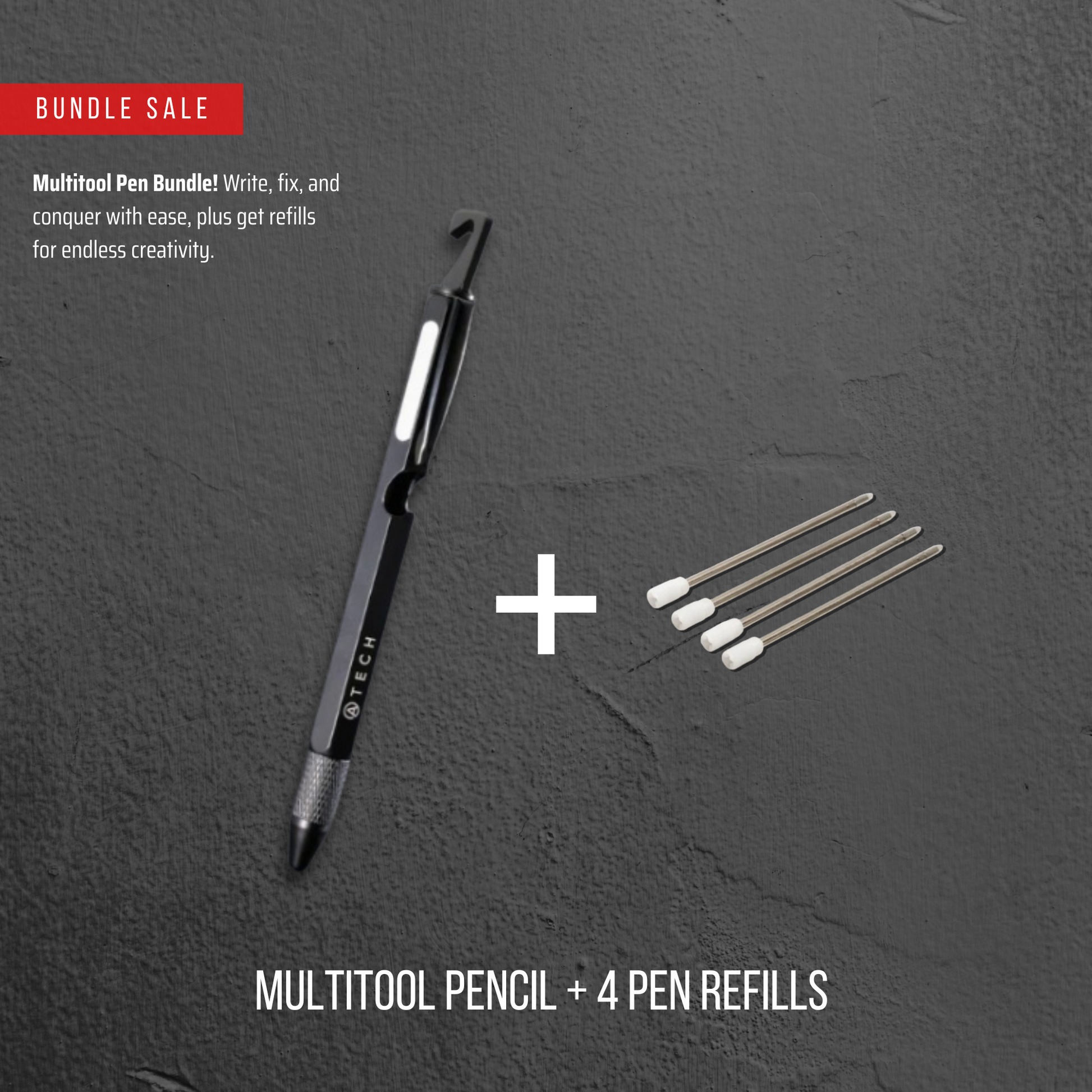 - 9 very handy functions: a ballpoint pen, a box cutter, a level, a mini flat-head, a Phillips screwdriver, a metric and inch ruler, a file, a stylus, and a bottle opener