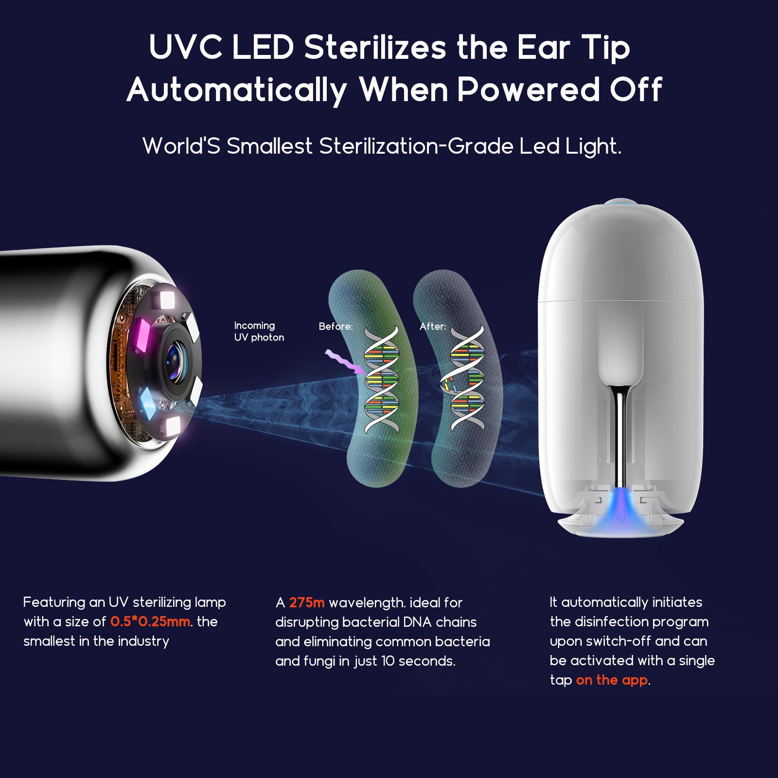 - Lens LED Lights: 3x 0201 white LED, 1x 0201 blue LED, 1x 0201UV sterilization LED